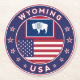 Insignia de Wyoming con bandera de Wyoming y bandera de los colores de EE.UU., forma redondeada. Emblema de Wyoming. Sello de Wyoming. Colección de Estados Unidos.