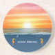 Regalo de fiesta de amanecer en el océano y caballitos de mar Posavasos. El texto se puede personalizar. Ideal para regalos de boda de playa, cumpleaños y más.