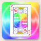 Un diseño de cartas de juego de un rey que usa una camiseta con tinte de corbata arco iris y hace el signo de la paz, con el símbolo de la paz como traje de cartas.