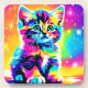 Posavasos Retrato de Gatito Arcoiris