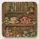 A cozy retro-inspired design featuring a charming bookshelf filled with vintage books, delicate botanical accents, dragonflies, butterflies, mushrooms and a comforting cup of tea or coffee.