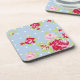 Este Rosa On Blue Cork Coaster Set presenta rosas rosas rosas y un fondo de polka azul y blanco. Ideal para una decoración de estilo chic o rústico.