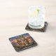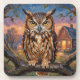 A coasters that features a striking Great Horned Owl, rendered in a rich, thick impasto oil painting style. The vibrant textures and warm sunset backdrop create a cozy, rustic atmosphere that is perfect for nature lovers and art enthusiasts alike.
