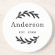 Posavasos Rustic Laurel Branch Wreath Last Name Monogram