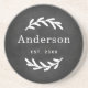 This simply elegant custom monogrammed beverage coaster features white leafy laurel branches that frame a family last name. A beautiful keepsake gift for newlyweds or new homeowners. The rustic black background image can be removed and printed background color can be modified so the design perfectly coordinates with your home decor.