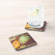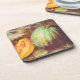 Un bello cuadro vintage de una calabaza azul bajo un árbol, de colores vivos. Se ha cortado una pieza de ella dejando una carne naranja brillante. En colores ámbar, marrón, gris, azul y naranja. Un saludo magnífico para cualquier amante de la temporada de otoño.