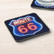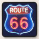 Este conjunto de 6 ruedas plásticas de corcho dorado y brillante con la imagen de un signo de neón rojo, blanco y azul de la Ruta 66 sobre negro, es una pieza decorativa apropiada o un favor de partido para un fiesta de los años 20, 40 o 60.