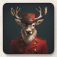 Retrato de un reno vestido con un traje oficial rojo que probablemente esté trabajando para Santa Claus. Feliz Navidad a todos