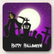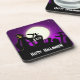 El Grim Reaper en un cementerio con luna llena y fondo de cielo morado. Un diseño muy divertido y aterrador para tus galletas de bebidas de Halloween.