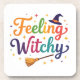 Una linda cita colorida Feelin Witchy con gorra y escoba. Ideal para Halloween.