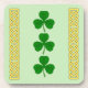 Según la tradición, San Patricio usó el trébol de tres hojas para ilustrar la Trinidad cristiana. Aunque la autenticidad de esta tradición está en duda, el shamrock se ha convertido en un símbolo de Irlanda. Aquí aparece un trío de shamrock entre dos bandas de nudos celtas.