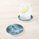 A luminous figure stands between crystalline waves and star-filled skies, encased in glowing shards of light.