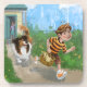 Este adorable arte de un niño y su perro corriendo proviene del libro de imágenes Sheldon the Sheltie's Tasty Adventure. Esta soleada escena de verano comparte la exuberancia de un niño y la amistad de su perro y su aventura corriendo al jardín para algunas delicias deliciosas. Perfecto para los amantes del perro de todas las edades.
