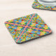 Los patrones geométricos vibrantes llenan la imagen, con círculos, triángulos y remolinos en un calidoscopio de colores que incluyen azul, verde, amarillo y rojo. El diseño intrincado crea una sensación de simetría y equilibrio.