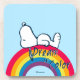 Snoopy is the loveable pet beagle of Charlie Brown in the comic strip Peanuts by Charles M. Schulz. Check out this cute Peanuts design featuring this loveable dog laying on a rainbow.