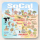 Luminosa y feliz escena - un mapa personalizado vista del sur de California - encantadores personajes disfrutan del cálido sol de SoCal - Los Ángeles, San Diego, Anaheim, Santa Bárbara, Riverside, Palm Springs y El Centro están incluidos - Parque Estatal del Desierto de Anza Borrego y Parque Nacional Joshua Tree, así como las ciudades fronterizas de Tijuana, Tecate y Calexico en México.