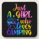 Cuidado diseño "Sólo un chica al que le encanta acampar" en colores arcoiris.