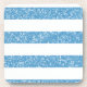 Moderno y divertido Sparkle Purpurina Look Stripes Coaster Set. Este diseño presenta un patrón brillante de rayas purpurinas en azul. Añadir texto a este diseño para darle un toque personal.