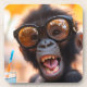 Mit einem strahlenden Lächeln und einem kühlen Drink zeigt dieser Gorilla, wie man das Leben richtig genießt. Einfach zum Verlieben!