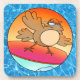 Guay, pájaro surfista colorido montando una ola en una tabla de surf en verano.