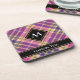 Tartán rosa, amarillo dorado y azul. Patrón sin foco. texto personalizado y monograma.