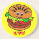 Graciosa hamburguesa deliciosa. El texto y el color de fondo son totalmente personalizables, como quieras.