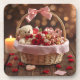 Posavasos Teddy Rose Basket Romantic Valentine Heart Drink