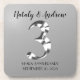 Celebrando tres años juntos. Feliz tercer aniversario boda. Etiqueta metálica plateada.