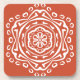 Esta mandala blanca se sienta en un oscuro fondo naranja. Los colores son creativos y cálidos. Parte de la colección Pympbys Mandala.