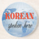 El coreano se habla aquí. Dile a todos que puedes hablar coreano con este bonito diseño sobre un fondo de tierra nublada.