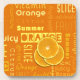 Trozos de fruta fresca naranja con tipografía de texto moderna y de moda.