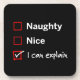 Travieso o bueno – puedo explicar. Asegúrate de no estar en la lista de los traviesos de Santa. Nadie puede portarse bien todo el año. Solo necesitas una buena excusa.