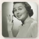 Mujer que muestra tres dedos en estudio, (B&W), marcas del retrato el | George el | AssetID: 57520092