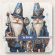 Asistentes de vapor de color agua con gorras de fondo azul fresco, barbas y bigotes.