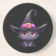 Posavasos Un gato negro lindo vistiendo al Gorra de una bruj