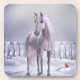 Añada un toque de magia a su entretenimiento con estas galaxias con un unicornio blanco de nieve con una larga cola y un cuerno de oro parado en la nieve suavemente cayendo en esta obra de arte digital del artista Jayne Wilson.