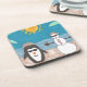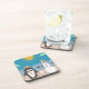 Un muñeco de nieve y un pingüino se van de vacaciones a la playa.