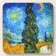 Casas de arte con la carretera de pintura al óleo de Vincent van Gogh, con Cypress y Star (1890), también conocida como Country Road en Provence por la noche. La gente camina por un camino que pasa por un hermoso ciprés bajo un cielo azul nocturno con luna amarilla y estrellas. Un regalo fantástico para los aficionados al post-impresionismo y al arte holandés.