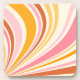 Ilustracion abstracto de color retro con rayos solares ondulados color rosa ondulado, violeta, marrón, beige, amarillo y naranja sobre fondo pastel