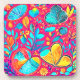 Una fascinante obra de arte abstracta con vibrantes elementos florales y corazones juguetones sobre un fondo rosa audaz. Esta pieza es una explosión de color y energía (Este diseño hecho con IA). ¡Haga el pedido hoy y acepte la alegría de ir de compras!
