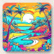 Una magnífica playa tropical con una vibrante puesta de sol, palmeras y aguas cristalinas. Perfecto para la moda, afiches de viaje y vibraciones de verano (Este diseño hecho con IA). ¡Haga el pedido hoy y acepte la alegría de ir de compras!