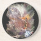 La Boda india norteamericana Night Beautiful surreal collage de una pareja norteamericana india - ella se arrodilla ante él sobre las rocas rojas - mientras su mano descansa sobre su hombro - esto está colocado sobre un fondo de plumas abstractas- en la esquina superior izquierda está una morena blanca de búfalo que parece estar fuera del cielo lleno de plumas- en la esquina inferior derecha está un lobo blanco gritando