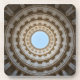 Una vista impresionante y perfectamente simétrica del gusano que mira directamente hacia arriba hacia la cúpula ornamentada de una gran rotonda neoclásica, que recuerda a una antigua capital o biblioteca estatal. Los círculos concéntricos de yeso intrincado y los detalles dorados dibujan el ojo hacia dentro, creando un vórtice hipnótico que culmina en el óvulo central. A través de la abertura, se ve un parqué de cielo azul claro, destacando la magnitud y la majestuosidad de la arquitectura. Esta imagen es una exploración pura y sobrecogedora de la simetría, la grandeza y la artesanía arquitectónica, capturando la magnificencia del diseño clásico desde una perspectiva inmersiva.