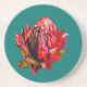 Obra de arte original de una pintura acuarela de una flor de waratah roja botánica australiana modernista. Arte floral con tema de flora australiana. Un recuerdo australiano.