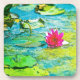 Un lirio de agua fucsia con vegetación lima en agua turquesa.