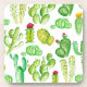 Beautiful repeating pattern features a variety of watercolor cacti from prickly pear to saguaros.