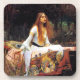 John William Waterhouse la señora de los prácticos de costa de Shalott. Pintura al óleo en lona a partir de 1888. La señora de Shalott es una pintura hermosa del Pre-Raphaelite de una escena del poema de señor Tennyson de Alfred del mismo nombre. La pintura representa a la señora condenada de la navegación de Shalott hacia Camelot en un bote pequeño cubierto con una tapicería roja hermosa que ella tejió mientras que caía en amor con Lancelot. En el barco siente tres velas y un crucifijo de los cuales el chica mire lejos. Visten a la señora misma en un vestido medieval azul claro que fluye bordado con oro. Su pelo es castaño ligero y ella sostiene la cadena del barco mientras que presiona lejos del muelle en las cañas y los cojines de lirio más allá. Un gran regalo para las fans de John William Waterhouse, de los Pre-Raphaelites, de la pintura inglesa romántica, y de la leyenda Arthurian.
