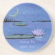 Una acuarela de un lirio de loto en un estanque bajo una luna creciente adorna este "¡La paz sea contigo!" Posavasos! Personalizar cambiando el texto para que se adapte a ti mismo!