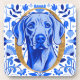 Weimaraner colourized in blue hues with a gold leaf letter "O" and a Blue and White decorative floral pattern background. This is a custom design for the Ontario Weimaraner Rescue and Assistance (OWRAssist). A percentage of the proceeds goes toward helping rescued Weimaraners.