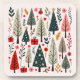 This festive design features a charming forest of whimsical Christmas trees surrounded by cheerful holiday details, including bright red presents, playful ornaments, golden stars, and winter foliage. With a cozy hand-drawn style and a palette of deep greens, soft neutrals, and warm pops of red, the artwork captures the nostalgic joy of the season. Perfect for creating a magical holiday mood, it combines modern folk inspiration with a timeless Christmas spirit, making it a delightful choice for seasonal decorating and gift-giving. AI generated artwork.